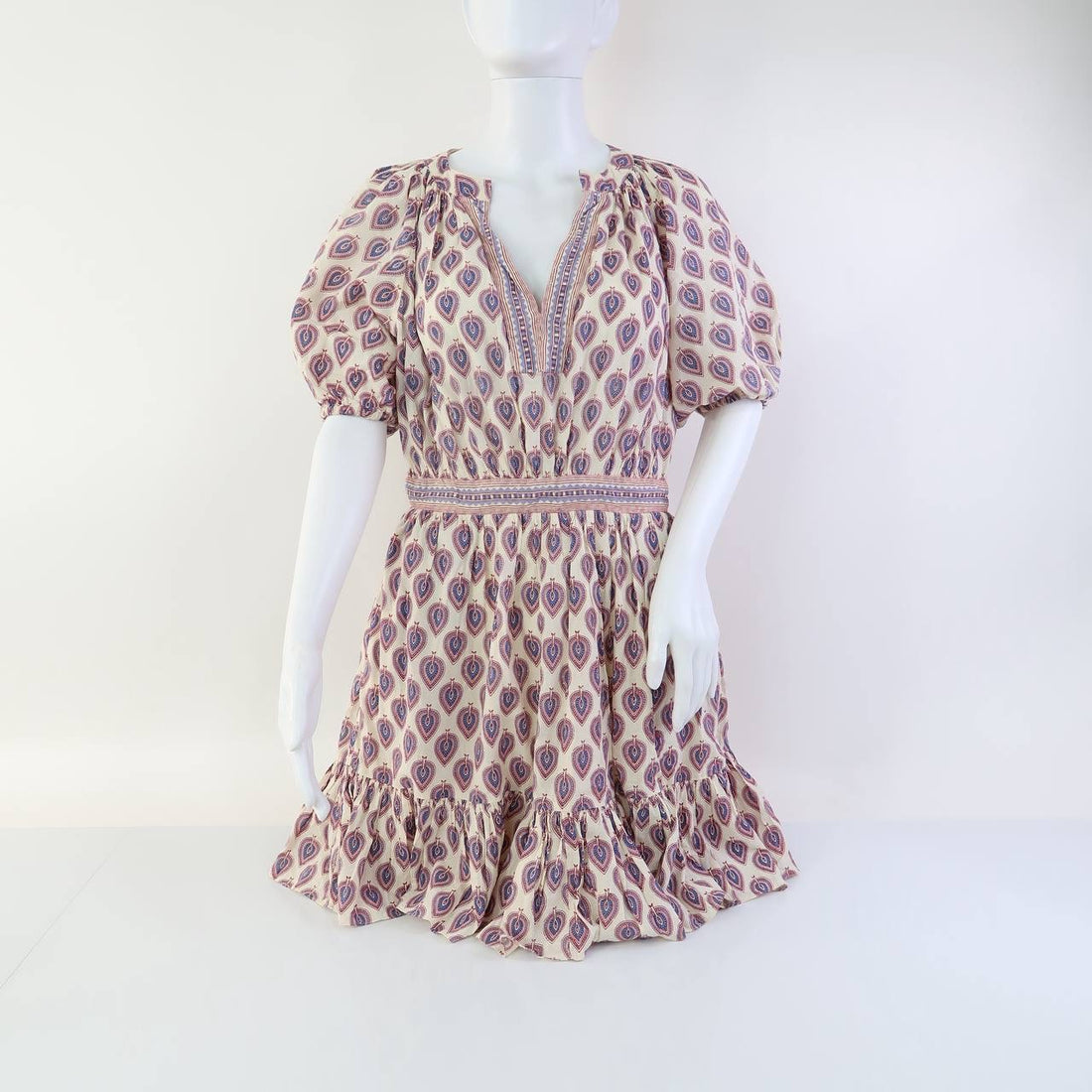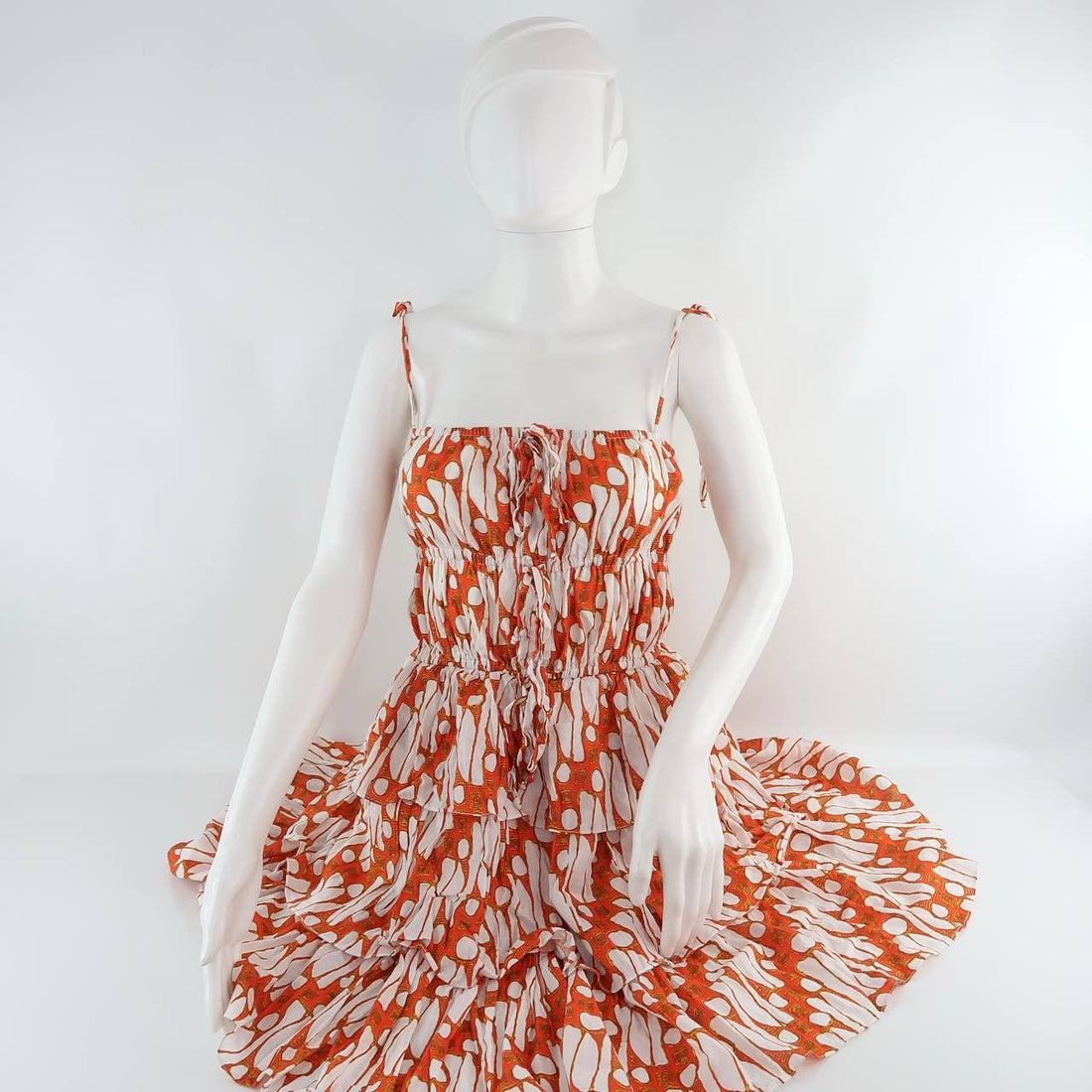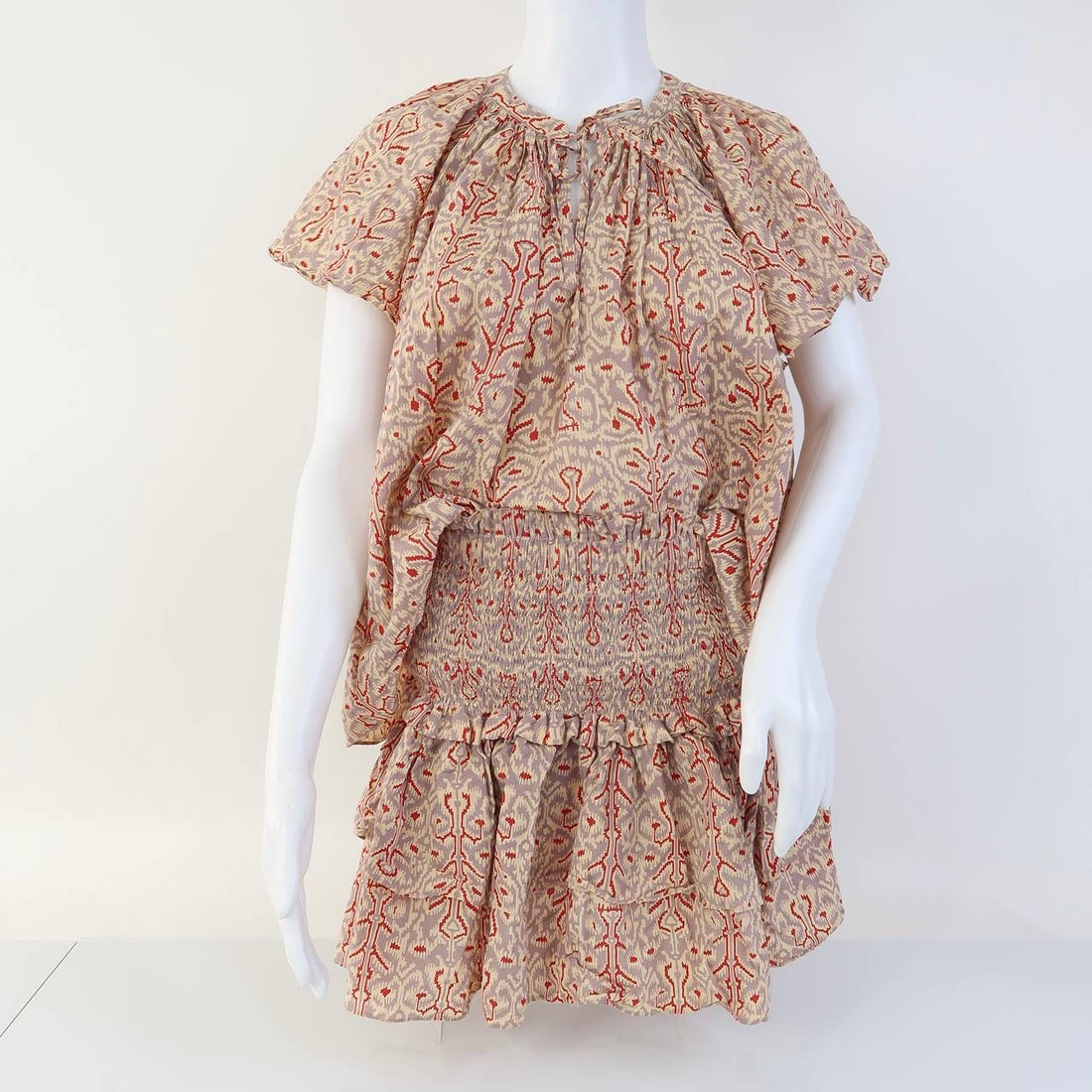 Ikat Wide Smocked Waist Tiered Ruffle Cotton