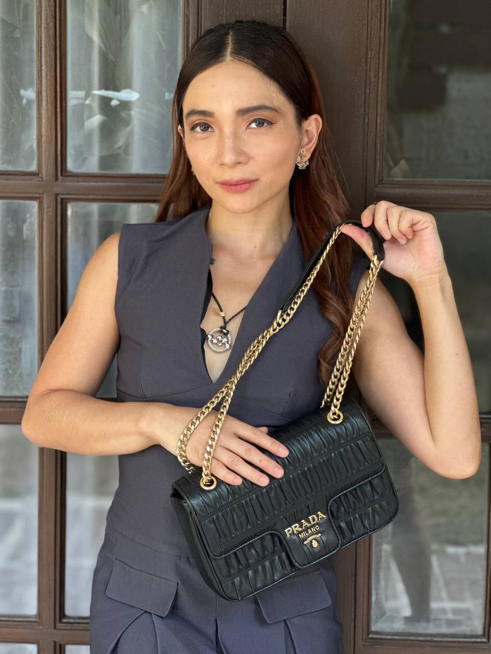 1BD235 Nappa Gaufre Nero Crossbody Bag